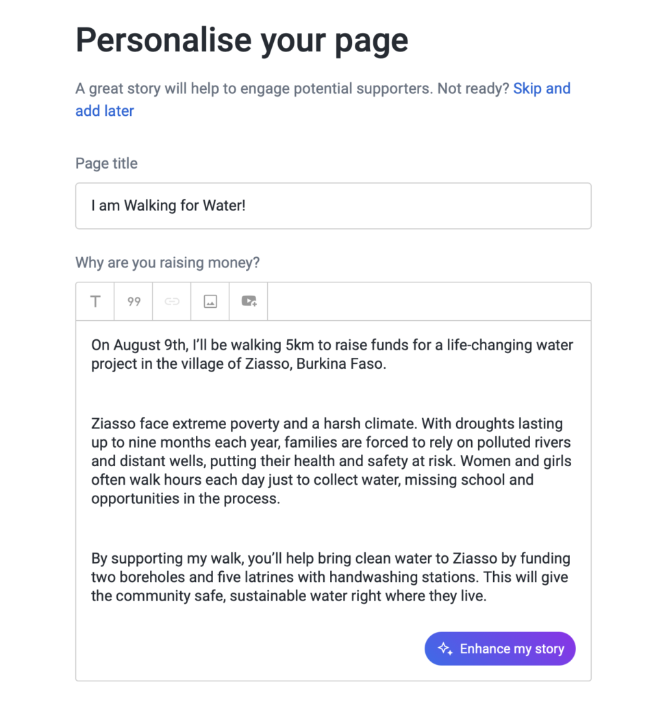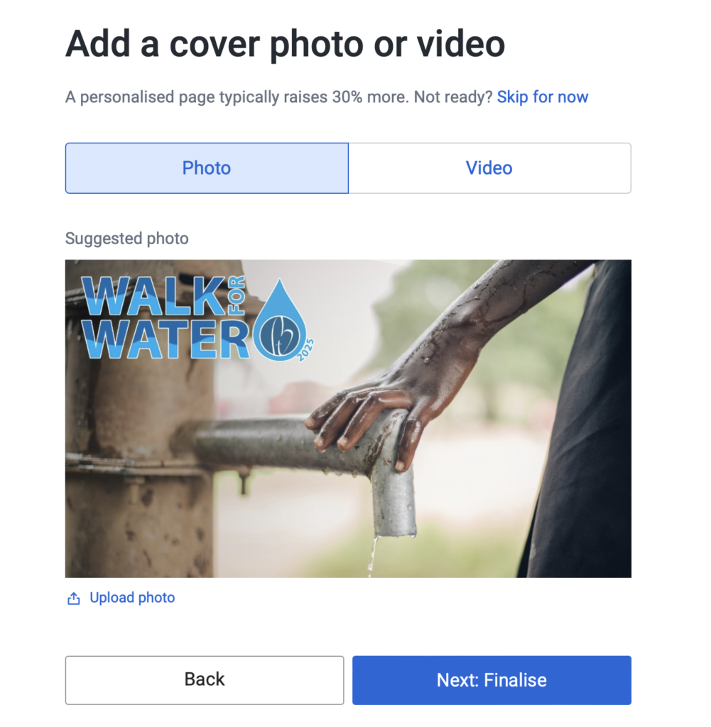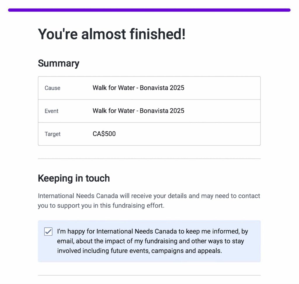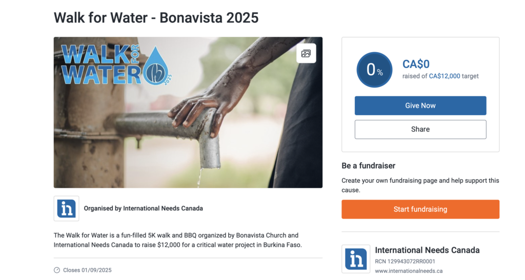 Step 1: Visit https://www.justgiving.com/campaign/walk-for-water-bonavista-2025